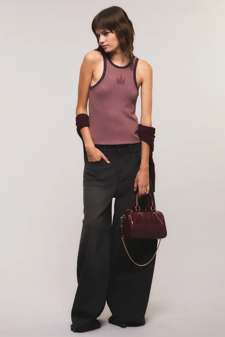 Musculosa de calce ajustado con cuello redondo, sin mangas y diseño exclusivo en el frente con detalles brillantes. Una prenda versátil ideal para completar looks casuales y urbanos con estilo propio.