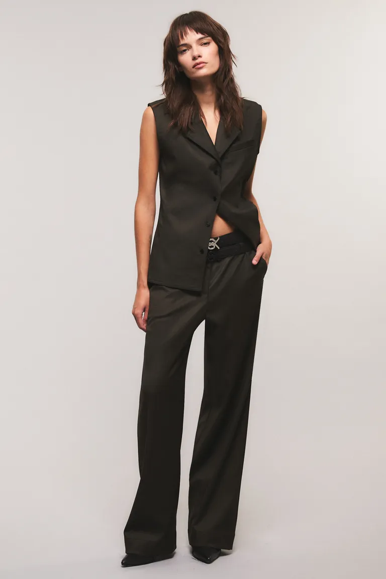 Pantalón sastrero de corte recto y tiro alto, diseñado para ofrecer una silueta estructurada y elegante. Presenta una cintura ancha, bolsillos traseros con detalle ojal y cierre mediante broche metálico. Ideal para lograr un look sofisticado y versátil, este modelo destaca por sus pinzas de ajuste que proporcionan un calce preciso y cómodo. Una prenda esencial en todo guardarropa, combinable para diversos estilos y ocasiones.