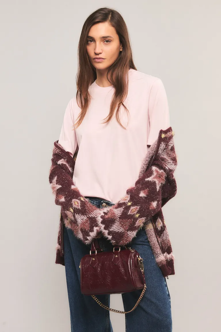 Remera de corte amplio con cuello redondo, manga corta y detalle bordado en el frente de Kosiuko