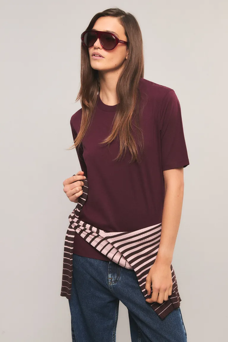 Remera de corte holgado con cuello redondo mangas cortas y detalle bordado al frente de Kosiuko