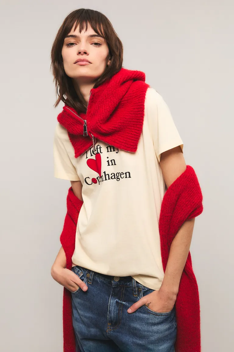 Remera de corte clásico con cuello redondo y manga corta. Presenta un diseño gráfico central con inscripción y detalle de corazón, ideal para un look casual y versátil en el día a día. De calce cómodo y tiro a la cintura, esta prenda es un básico infaltable para combinar con todo tipo de outfits urbanos.