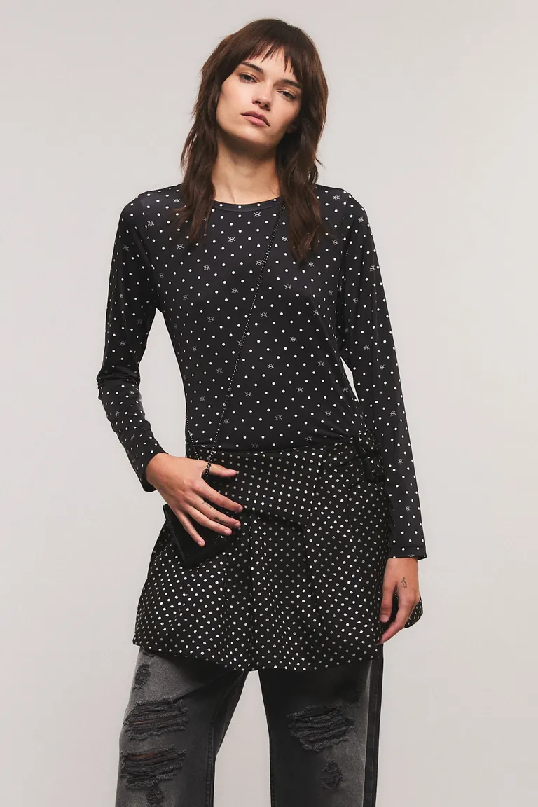 Remera de calce regular con mangas largas y diseño estampado. Presenta un largo que llega a la altura de la cintura, ideal para combinar en looks casuales y urbanos. Una opción versátil que se adapta a diferentes estilos, brindando comodidad durante el uso diario.