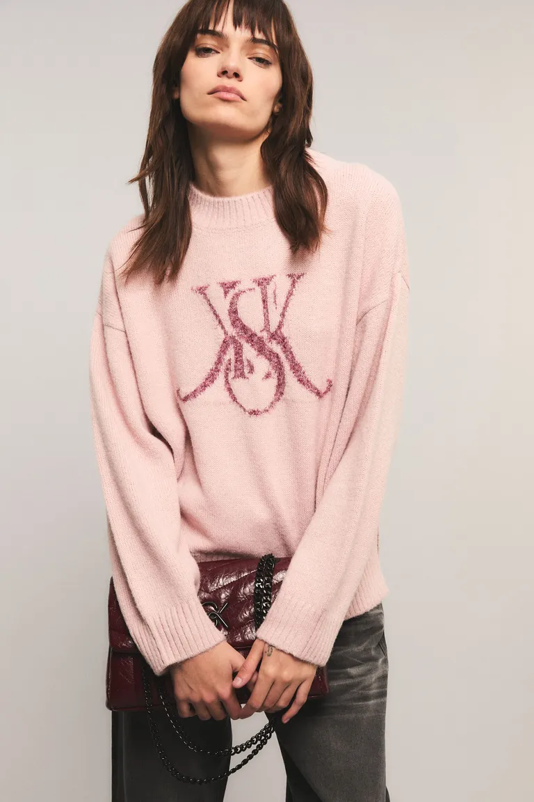 Sweater con calce relajado, cuello redondo y hombros caídos. Presenta un diseño de jacquard en el frente con detalle de hilado texturizado. Ideal para completar outfits casuales y cómodos con un toque de distinción.
