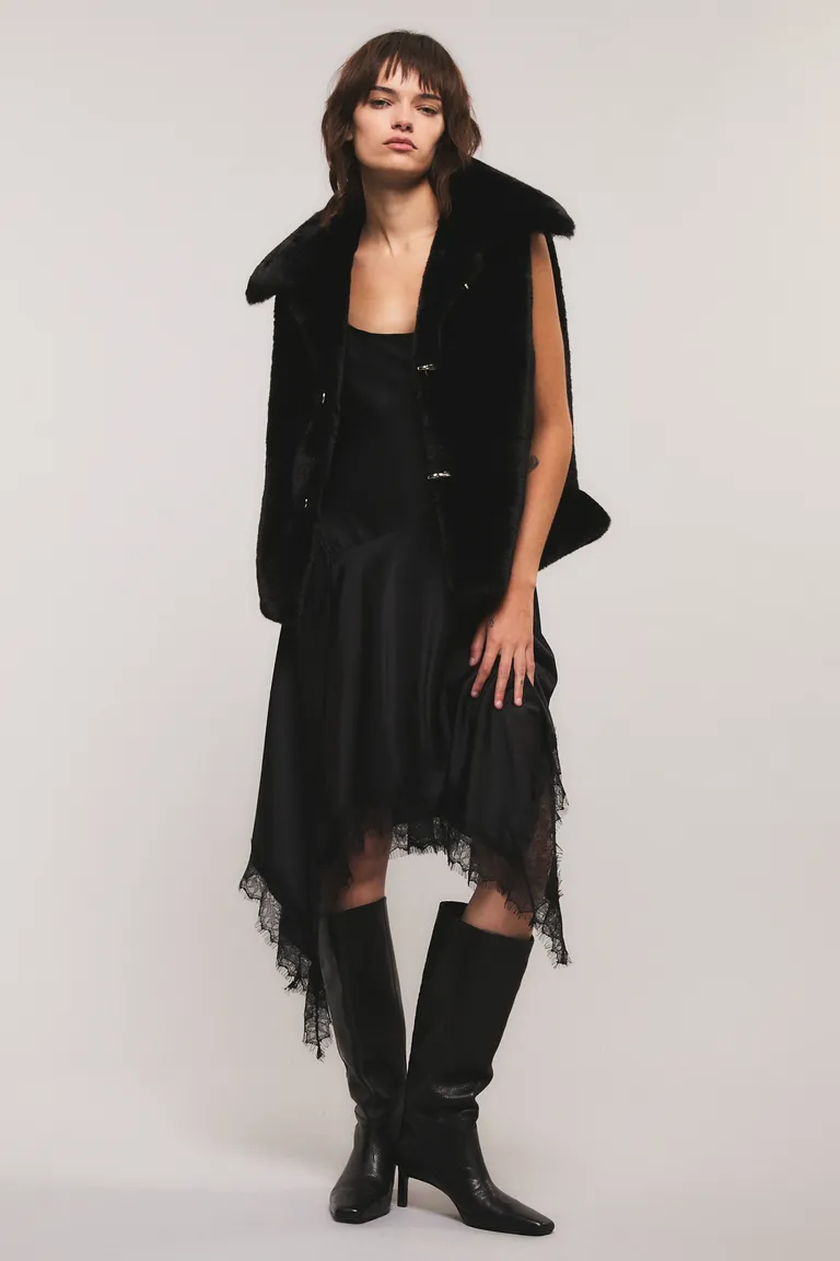 Vestido midi lencero asimétrico con detalles de encaje en el ruedo de Kosiuko