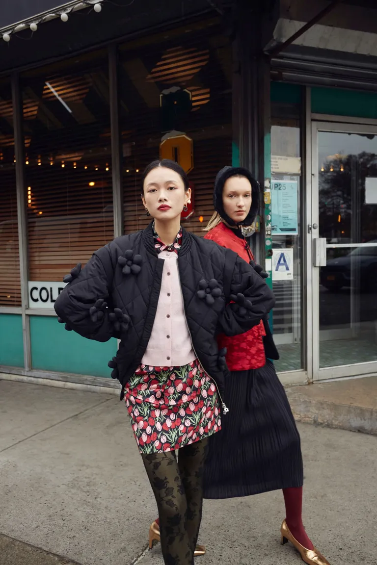 Mini falda de tiro bajo con diseño de tulipanes. Presenta un calce recto clásico, cierre invisible en el lateral y pinzas de entalle en la parte posterior para un mejor ajuste. Una prenda versátil ideal para combinar en diversos outfits.