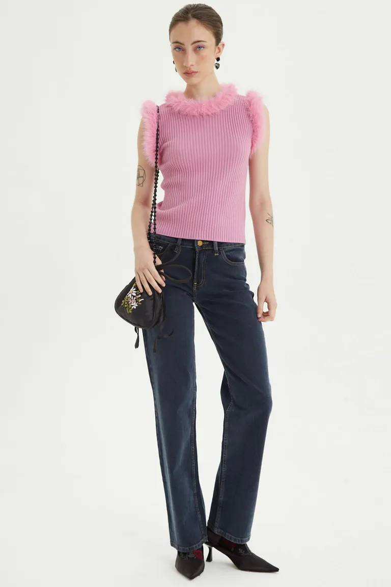 Pantalón de jean con diseño de corte recto y tiro bajo. Presenta un estilo clásico confeccionado en denim con costuras a contratono que resaltan su estructura. Ideal para combinar con diversas prendas en outfits casuales para el uso cotidiano, aportando versatilidad y comodidad al guardarropa.