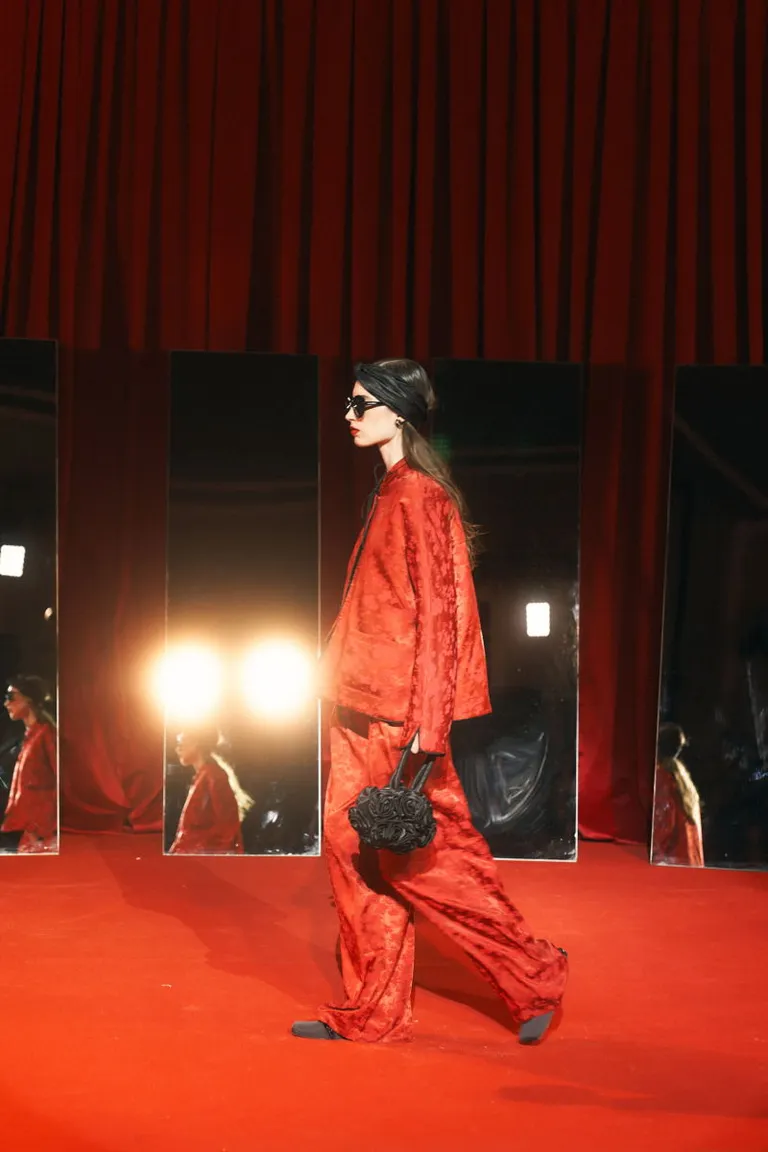 Pantalón de tiro alto con corte oversize y piernas amplias. Presenta una textura satinada con sutiles detalles en relieve y una caída fluida que aporta comodidad y elegancia. Cuenta con cintura elastizada y bolsillos laterales, ideal para lograr un look sofisticado y versátil tanto para eventos diurnos como nocturnos.