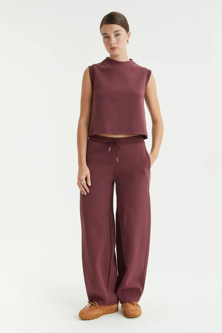 Pantalon de tiro alto con silueta estilo barrel y corte holgado. Cuenta con cintura elastizada ajustable mediante cordón, bolsillos laterales y detalles de pinzas tanto en las piernas como en el ruedo. Esta prenda presenta una caída cómoda y relajada, ideal para integrar en outfits casuales y deportivos de uso diario.