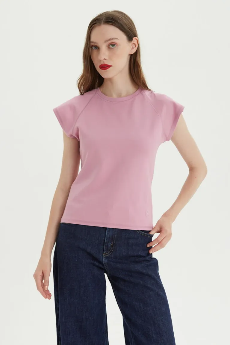 Remera básica de corte al cuerpo que llega hasta la altura de la cadera. Cuenta con escote redondo clásico y mangas cortas de diseño raglán, brindando un ajuste cómodo y anatómico. Es una prenda versátil ideal para completar conjuntos casuales de uso diario, ofreciendo un estilo funcional y sencillo que se adapta a diferentes ocasiones.