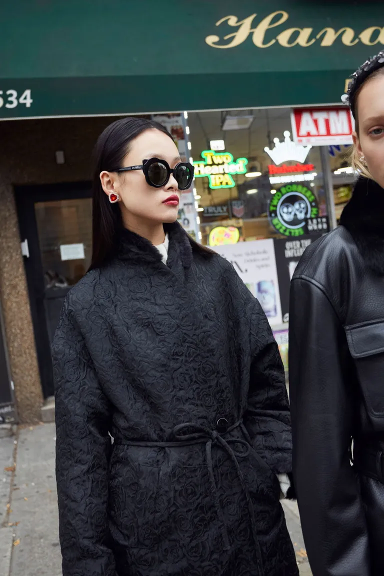 Tapado de corte recto con textura labrada y detalle de pelo sintético en cuello y puños. Este abrigo presenta mangas amplias, cierre frontal con botones y lazo ajustable en la cintura, ideal para quienes buscan una prenda versátil y sofisticada para los días de bajas temperaturas. Un diseño moderno con bolsillos laterales que aporta estilo y calidez a cualquier conjunto, perfecto para resaltar en eventos especiales o elevar outfits urbanos con una prenda de gran presencia.