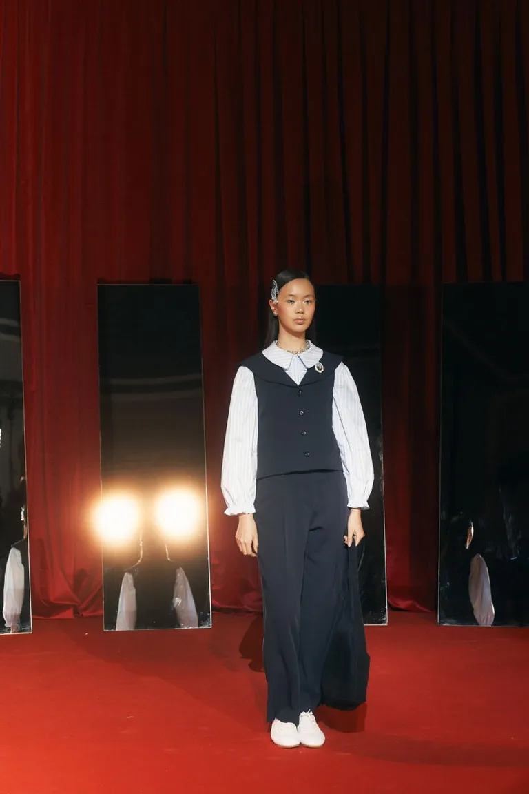 Top sastrero con diseño de cuello marinero y escote en V con botones. Presenta un corte recto con largo a la cadera y detalle de pinzas frontales para un mejor calce. Una prenda versátil y clásica, ideal para combinar en conjuntos formales o elevar tus outfits cotidianos con un estilo sofisticado y actual.