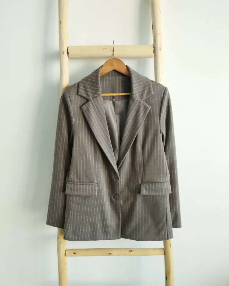 Blazer de diseño elegante y versátil, perfecto para combinar con diferentes estilos de ropa. Cuenta con bolsillos laterales y un corte que se adapta a la silueta, brindando comodidad y buen aspecto.