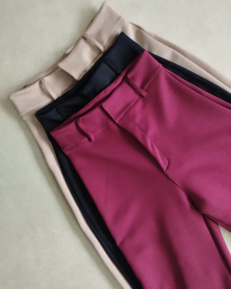 Estos pantalones de tela elástica súper suave ofrecen un corte wide leg moderno y cómodo. Ideal para cualquier ocasión, ya sea casual o formal. Su diseño versátil los convierte en una prenda imprescindible en tu guardarropa.
