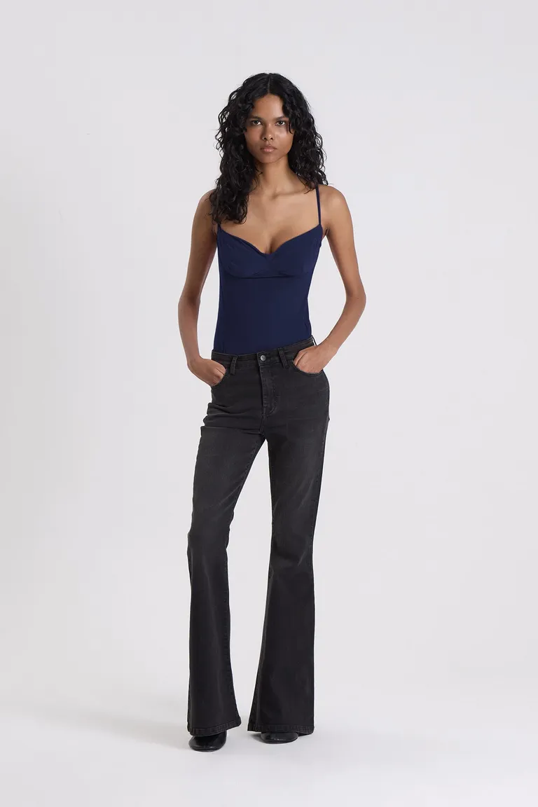 Body de ajuste entallado con diseño inspirado en la corsetería. Presenta un escote estilo lencero con breteles regulables y una estructura que se adapta al torso, ofreciendo un calce preciso mediante broches en la parte inferior. Ideal para combinar en diversos outfits, manteniendo una línea minimalista y versátil para el día a día.