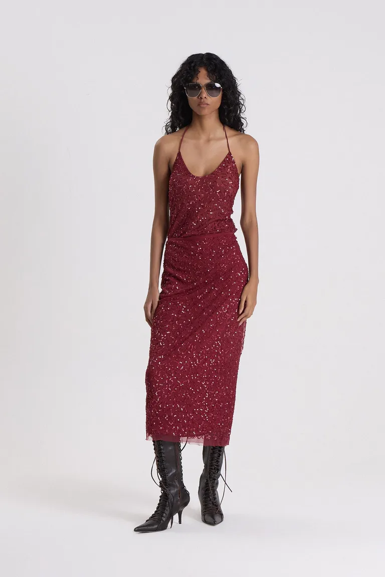 Body de diseño entallado con detalles de lentejuelas sobre tul, ideal para complementar diversos outfits. Presenta un corte versátil que se adapta a la silueta con elegancia y estilo distinguido para ocasiones especiales o eventos.