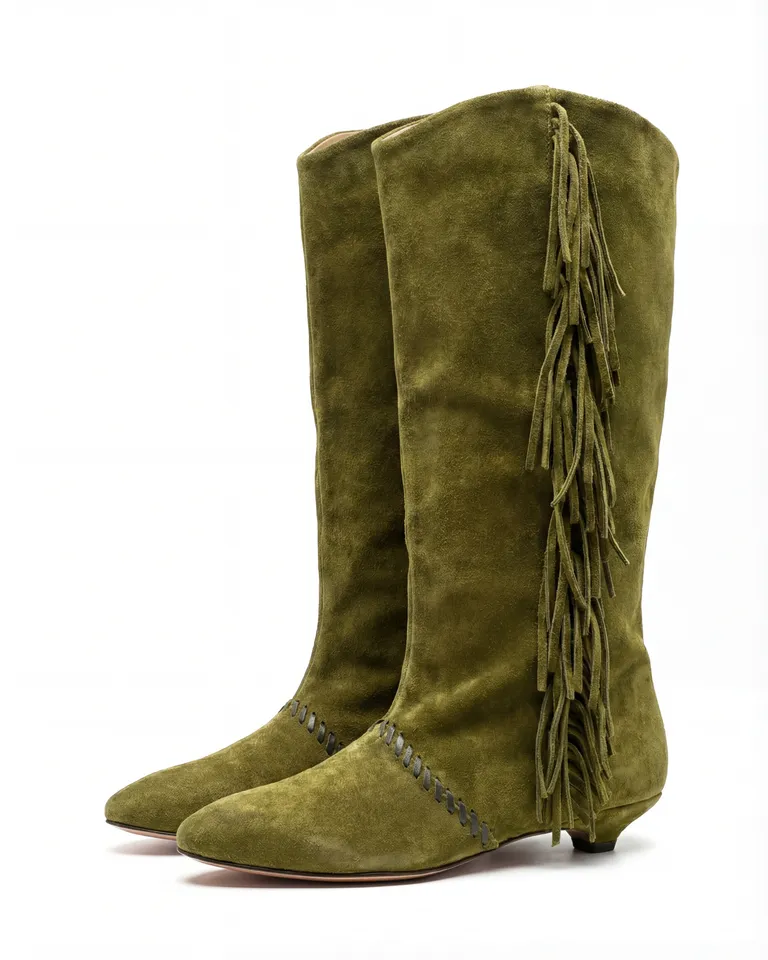 Bota de caña media con detalle de flecos laterales y aplique trenzado en el empeine. Diseño versátil de estilo casual, ideal para completar tus conjuntos diarios con un toque distintivo. Cuenta con una estructura cómoda para uso prolongado.