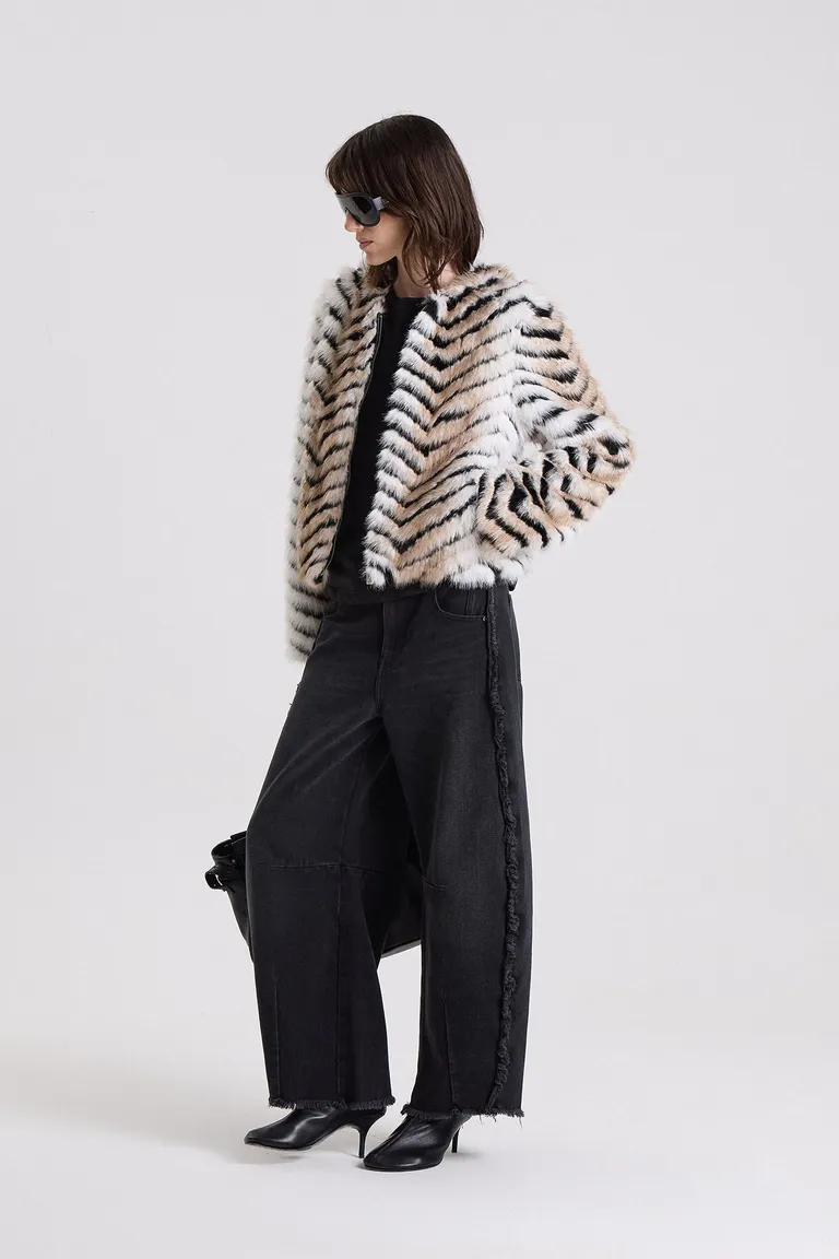 Campera corta con diseño de textura irregular y patrón geométrico. Presenta un corte recto con cuello redondo y cierre frontal, ideal para complementar outfits urbanos de temporada. Una prenda versátil, cómoda y con estilo definido para usar en diversas ocasiones durante los días frescos.