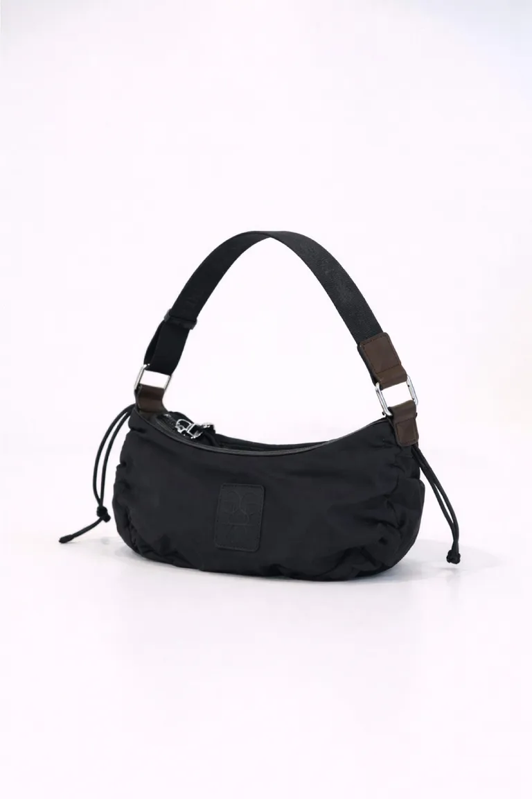 Cartera pequeña de diseño compacto, ideal para llevar tus esenciales con comodidad. Cuenta con cierre metálico, detalles fruncidos en la base, bolsillo interior para mejor organización y correa tejida resistente para usar al hombro.