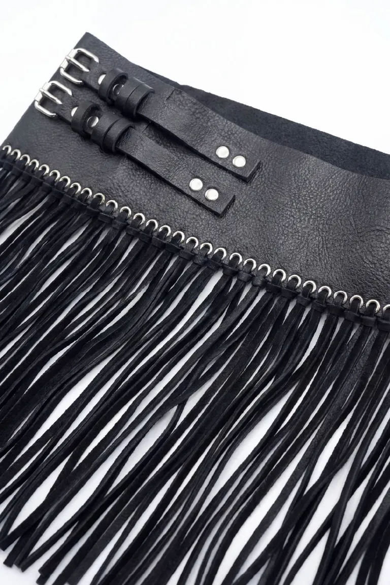 Faja estilo cinturón con diseño de doble hebilla ajustable y detalle de flecos largos que aportan movimiento y dinamismo. Ideal para definir la silueta y transformar tanto vestidos como equipos de sastrería, brindando un toque distintivo y artesanal a cualquier conjunto.