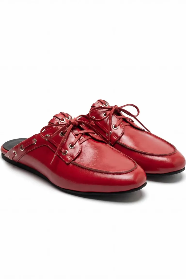 Mocasines de mujer con diseño de punta cerrada y cordones decorativos en la parte frontal. Este calzado de estilo destalonado ofrece un calce práctico y cómodo para el uso diario, combinando detalles metálicos en los ojales con una estructura clásica y refinada. Ideal para completar looks casuales o formales con un toque distintivo.