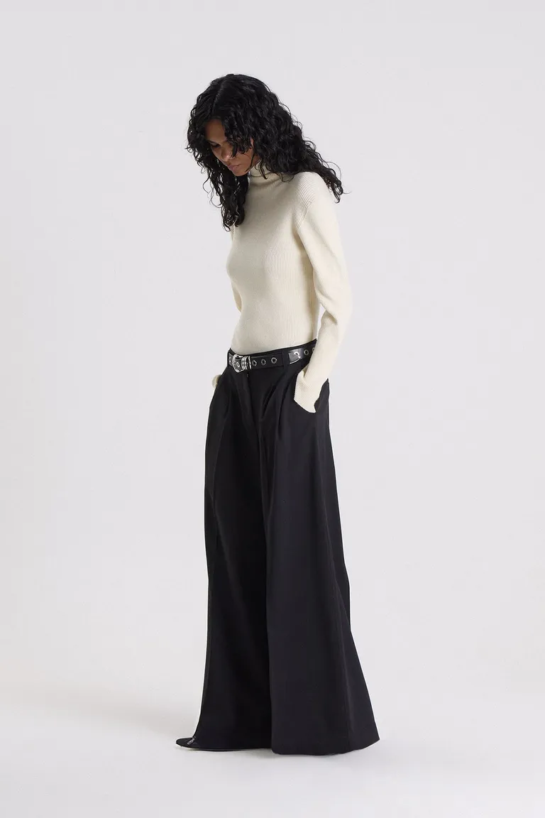 Pantalon de corte ancho con diseño fluido, ideal para lograr un look sofisticado y cómodo. Presenta una estructura con tablas en la parte delantera que aporta movimiento y un ajuste práctico en la cintura. Este modelo es versátil y se adapta a diversas ocasiones, combinando funcionalidad y estilo contemporáneo para tu guardarropa diario.