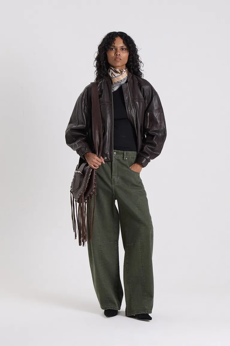 Pantalones de corte barrel con diseño de piernas amplias y ligeramente curvas. Presenta un detalle de recorte vertical que define la estructura de la prenda y ofrece un calce cómodo y moderno. Ideal para combinar en diferentes propuestas de estilo gracias a su formato versátil y tiro medio. Una opción urbana y funcional para completar conjuntos cotidianos con un toque de diseño diferenciado.