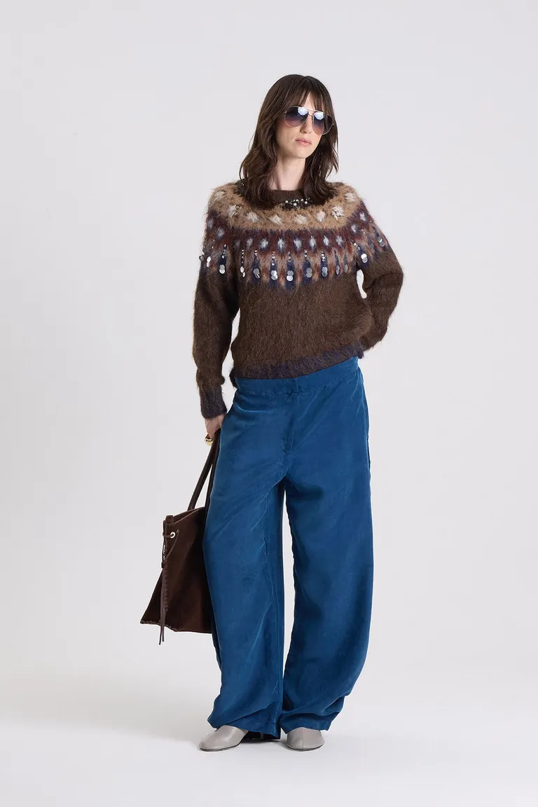 Pantalon de corte amplio con cintura ancha y cierre oculto. Presenta bolsillos laterales integrados, diseño con comba en la pierna y detalle de pinzado en la botamanga. Una prenda versátil para combinar en cualquier ocasión, ofreciendo comodidad y un estilo relajado para el uso diario.