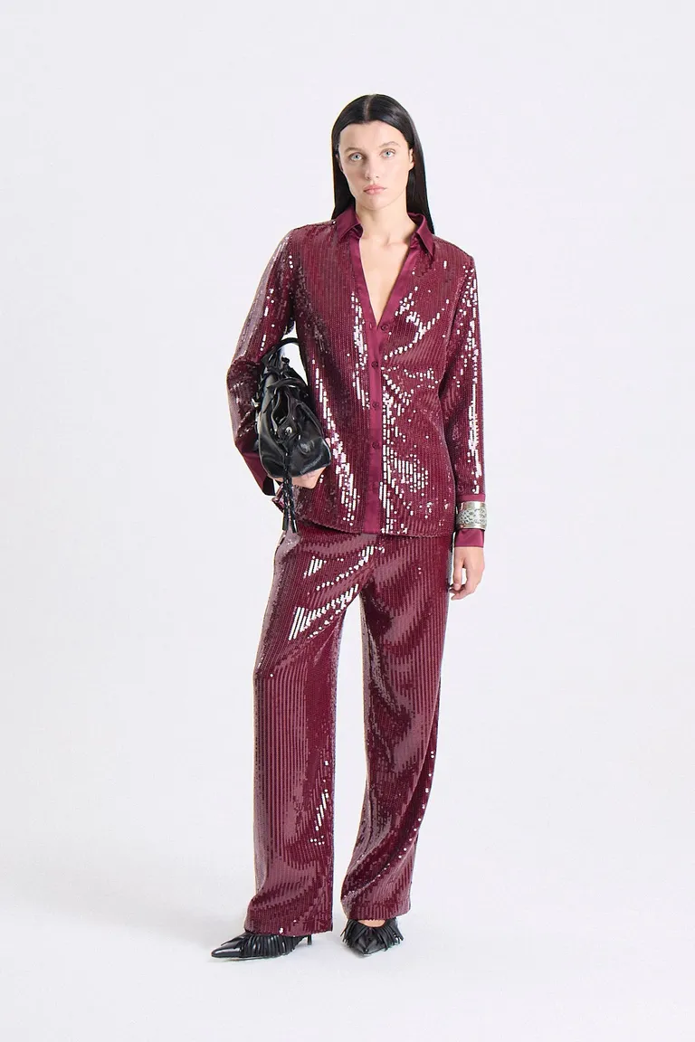 Pantalón de tiro medio con corte recto y terminación holgada, ideal para lograr un estilo sofisticado y cómodo. Presenta una textura con brillo integral y cintura elástica, ofreciendo versatilidad para combinar en diversos eventos o salidas. Un diseño fluido que aporta movimiento y elegancia al guardarropa femenino.