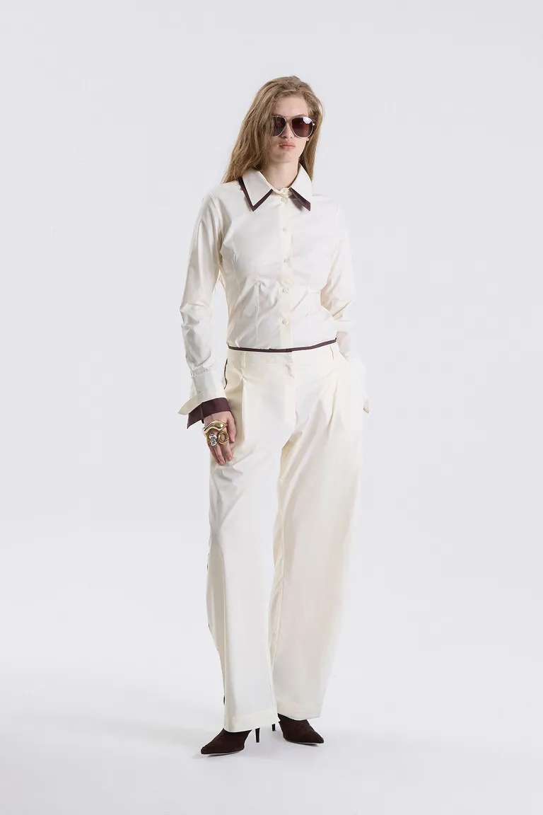 Pantalon sastrero con diseño de pierna amplia y fit relajado. Presenta cintura definida con cierre y gancho, incorporando bolsillos laterales funcionales y bolsillos ojal en la parte posterior. Su corte moderno permite una caída fluida, ideal para complementar conjuntos urbanos o de oficina con un estilo sofisticado y actual.