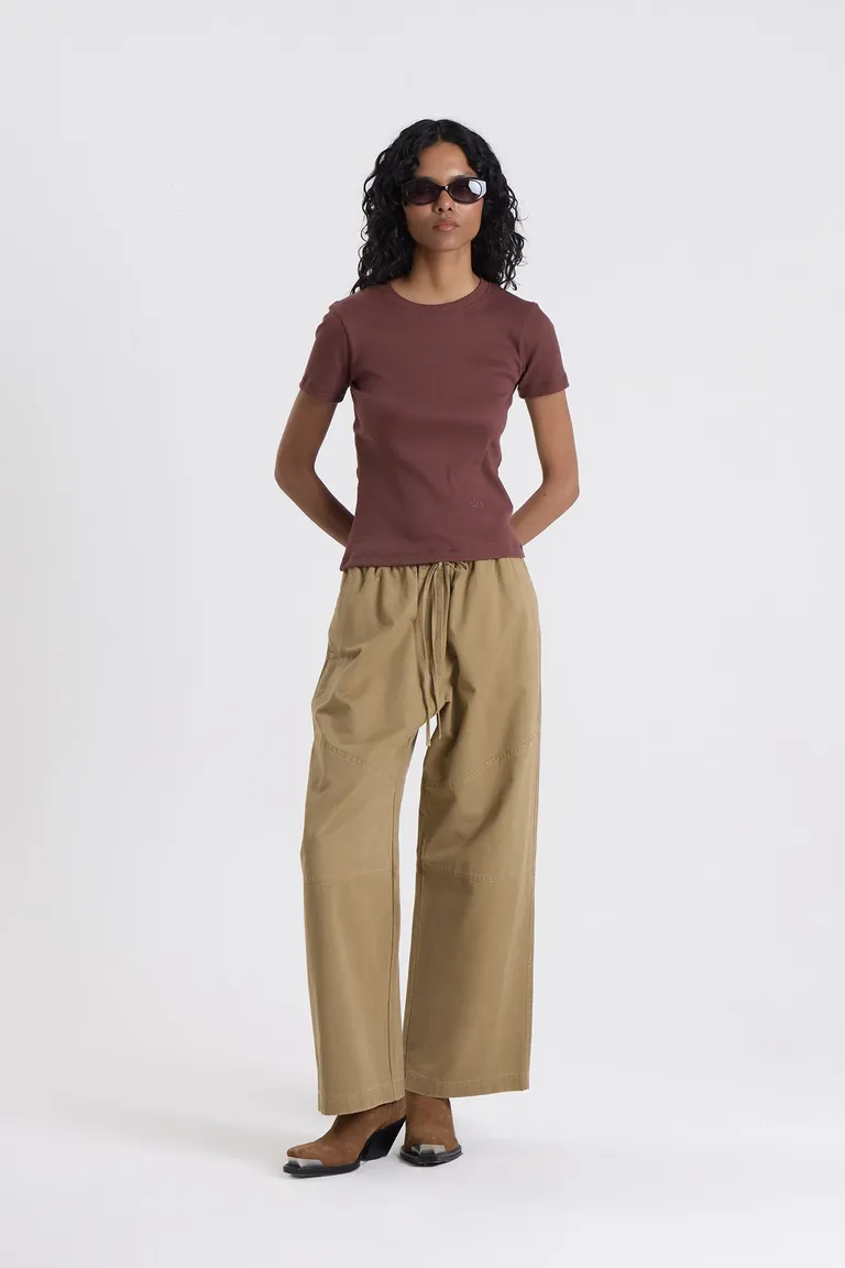 Remera de manga corta con escote redondo y calce al cuerpo. Esta prenda presenta una silueta clásica de corte ajustado, ideal para completar equipos informales o urbanos con un detalle sutil en el frente. Su diseño versátil permite múltiples combinaciones en el uso diario.