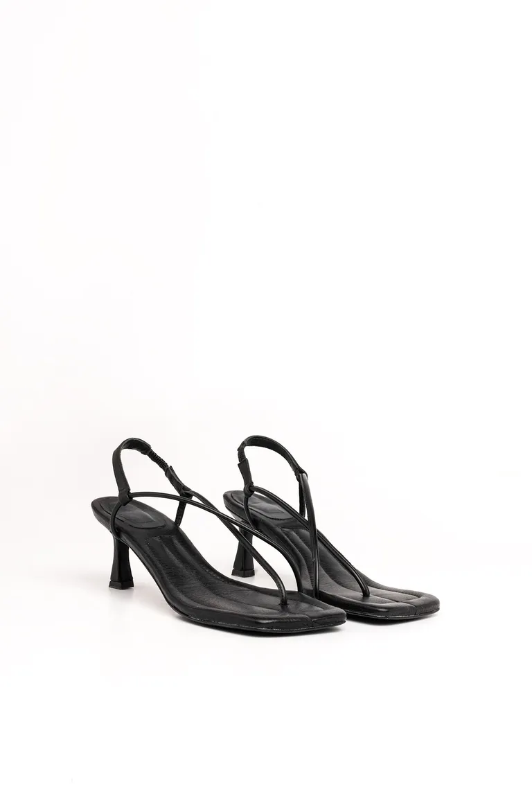 Sandalias con taco de altura media, diseño de punta cuadrada y tiras finas que se ajustan al pie. Modelo con talón descubierto y suela cómoda, ideal para completar diversos conjuntos con un estilo elegante y versátil.
