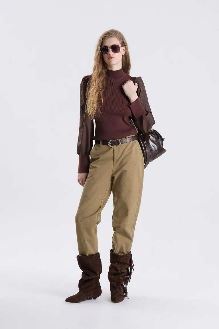 Sweater de cuello alto con diseño de calce relajado y mangas largas con volumen. Presenta un estilo versátil y contemporáneo, ideal para completar diversos conjuntos de temporada. Una prenda fundamental para el uso diario que ofrece un equilibrio entre comodidad y elegancia en el vestir cotidiano.