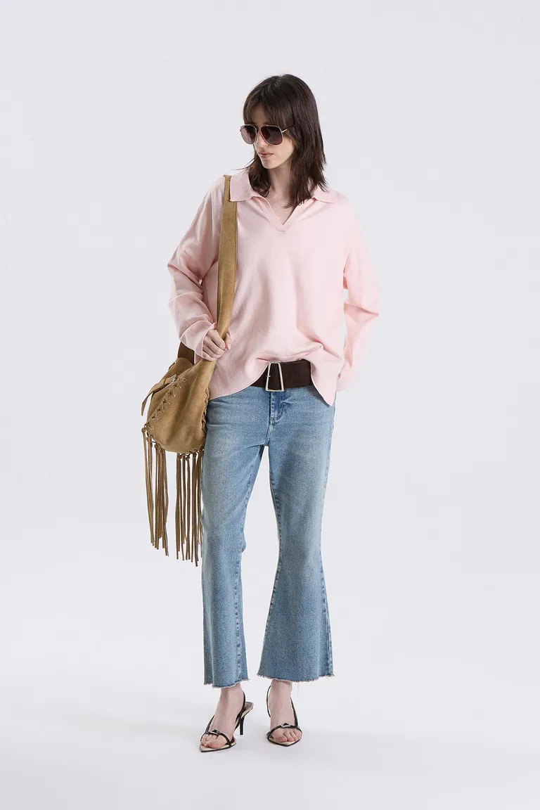 Sweater de calce relajado con cuello tipo polo y escote abierto. Presenta una silueta simple y fluida, ideal para complementar diversos outfits diarios con versatilidad y comodidad.