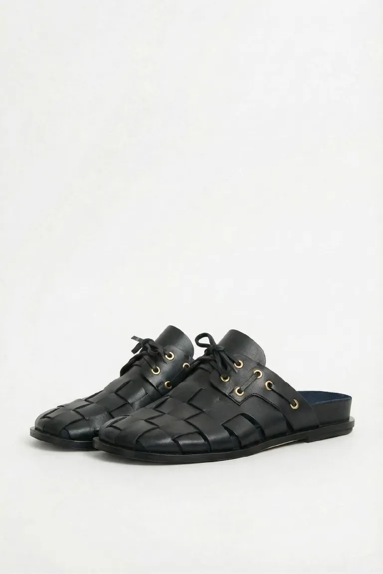 Zueco estilo descalzo con diseño de tiras entrelazadas y cierre de cordones de Maria Cher