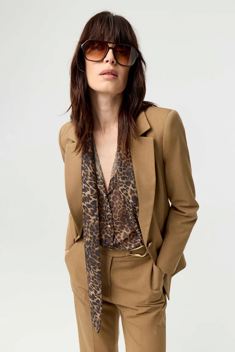 Camisa de calce relajado con mangas largas y cuello a la base. Presenta un diseño con lazo para anudar, ideal para sumar estilo y versatilidad a tus conjuntos cotidianos o formales. Su diseño aporta un toque distintivo a cualquier combinación.