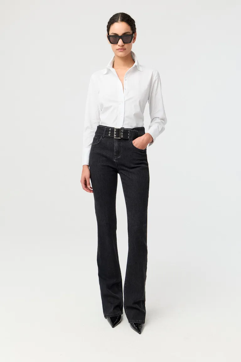 Camisa de corte entallado con cuello clásico y botones frontales. Presenta mangas largas con puños estructurados y un diseño que se ajusta a la figura, ideal para completar equipos formales o casuales de uso diario. Una prenda básica con diseño funcional.