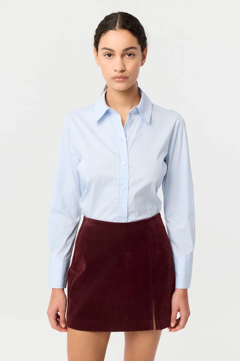Camisa de manga larga con cuello clásico y cierre frontal mediante botones a tono. Presenta un calce entallado que destaca la silueta, ideal para combinar en looks formales o casuales de uso diario. Su diseño atemporal la convierte en un elemento esencial del guardarropa femenino.