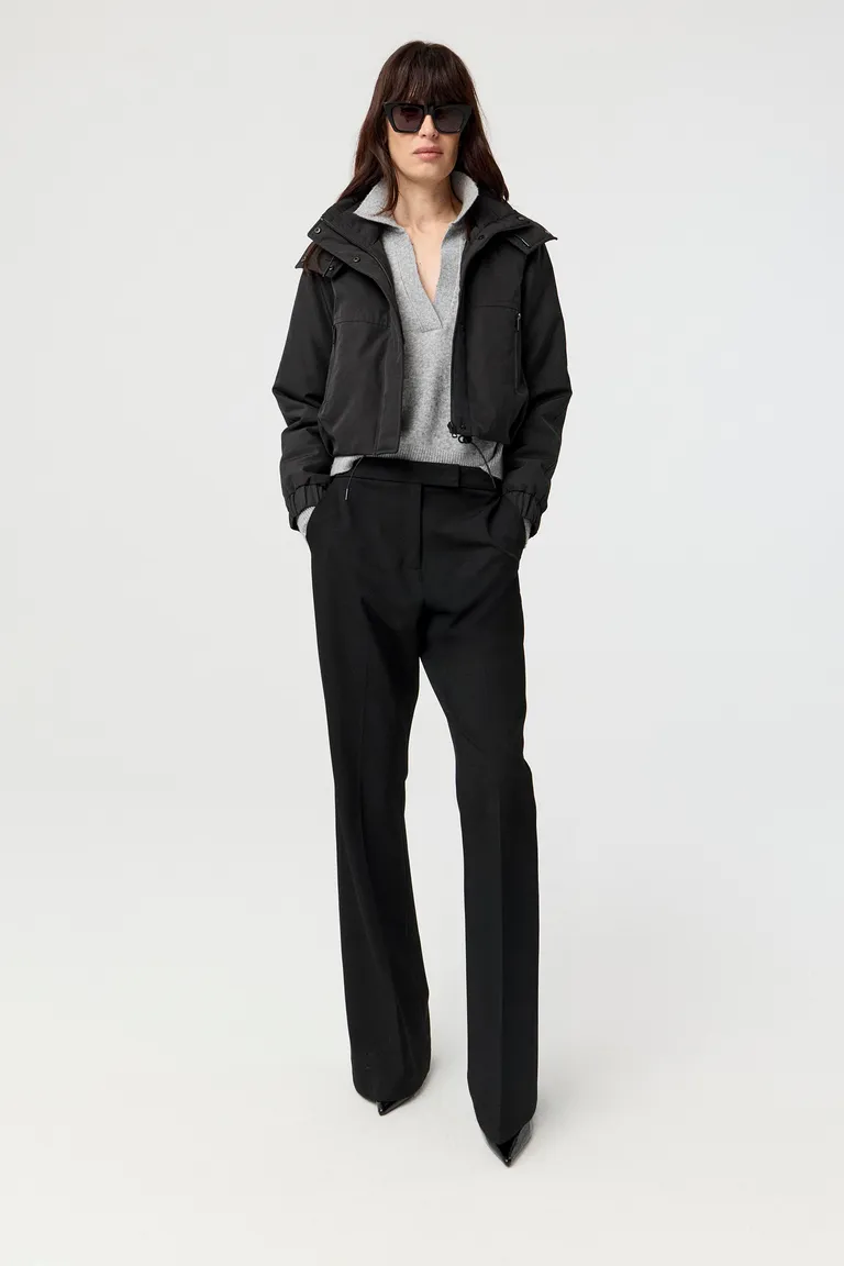 Campera corta con capucha y cierres impermeables. Presenta una silueta relajada con diseño funcional, ideal para completar outfits urbanos y modernos. Una prenda versátil de largo modular, perfecta para el uso diario en diversas ocasiones.