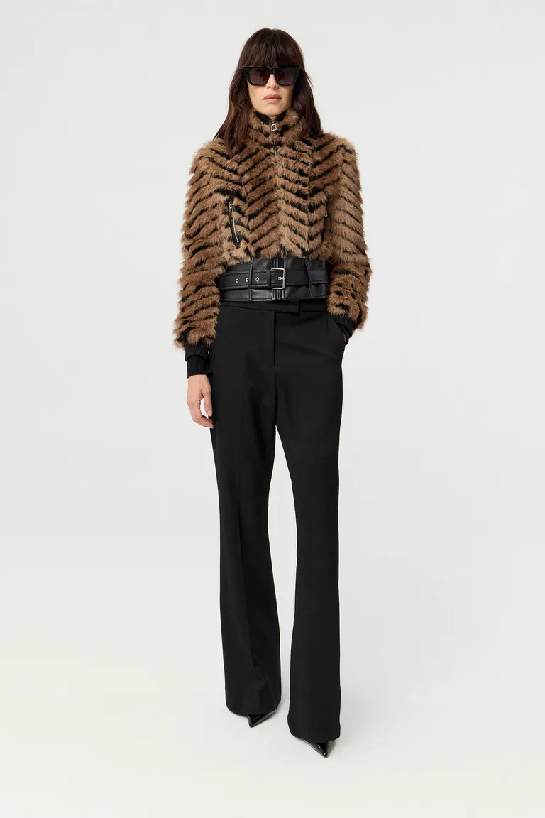 Chaqueta de textura combinada con cuello alto y cierre frontal. Diseño de silueta estructurada con cinturón integrado de hebilla metálica en la cintura. Una prenda versátil y sofisticada para completar outfits de invierno, ofreciendo un estilo moderno y distintivo para diversas ocasiones. Su corte favorecedor permite un calce cómodo y elegante en todo tipo de figuras.