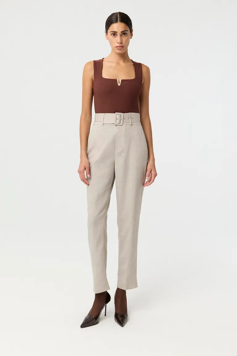 Musculosa de ajuste anatómico con escote cuadrado y breteles anchos. Presenta un detalle metálico distintivo en el frente, ideal para complementar diversos outfits. Una prenda versátil y esencial para el uso cotidiano que ofrece un calce cómodo y definido.