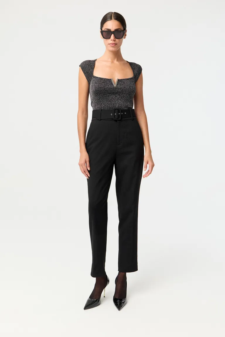 Remera de diseño anatómico con escote cuadrado y detalle metálico. Posee mangas estilo japonés que aportan una silueta definida y moderna. Ideal para combinar en diversos outfits, esta prenda destaca por su textura y calce entallado, ofreciendo un estilo versátil y sofisticado para completar cualquier conjunto.