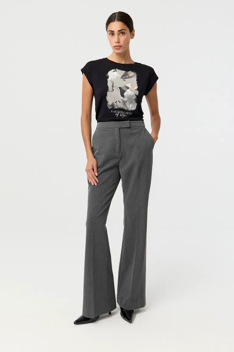 Remera de calce al cuerpo con escote redondo y mangas cortas. Presenta un diseño de estampa central que aporta un estilo moderno a cualquier conjunto. Ideal para integrar tanto en equipos informales como en combinaciones más estructuradas para el día a día.