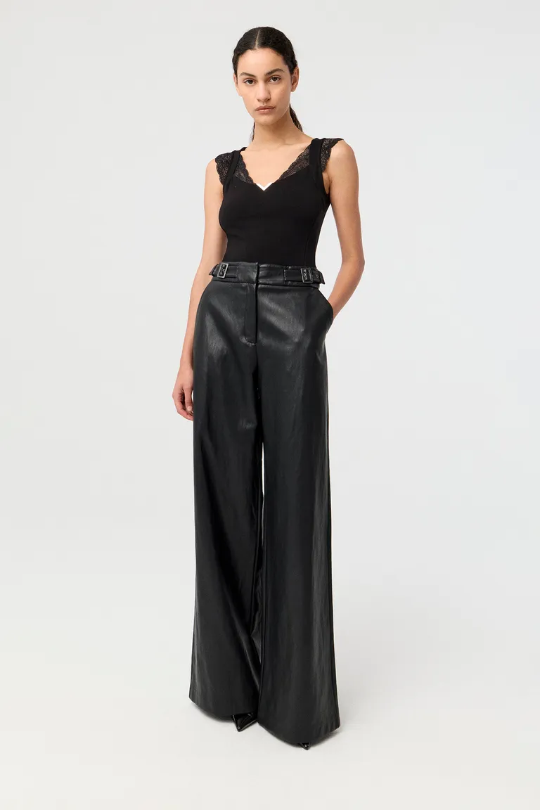 Remera de punto con calce anatómico y diseño sin mangas. Presenta detalles de puntilla en el escote y las sisas, aportando un toque femenino y delicado. Ideal para completar outfits versátiles con un estilo refinado y elegante.
