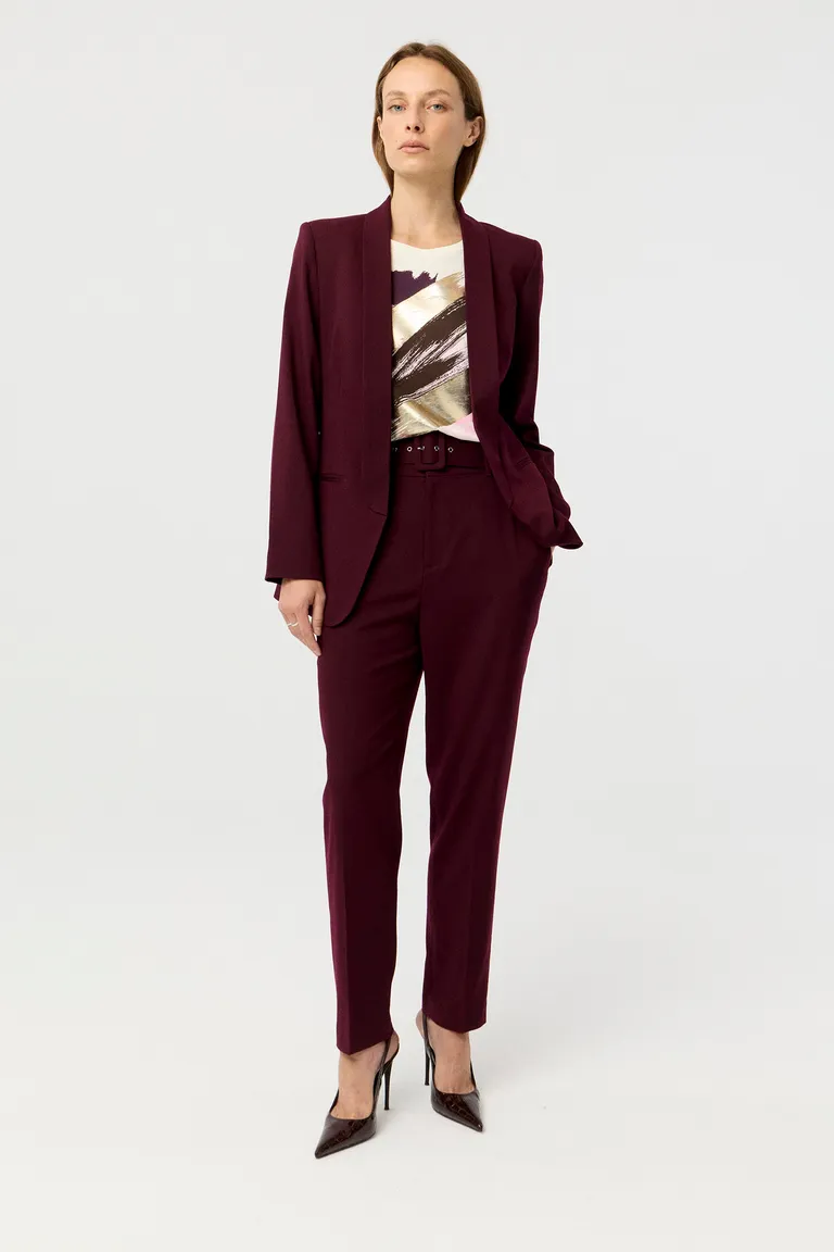 Remera de calce al cuerpo con escote redondo y mangas cortas. Presenta una estampa central con efecto de pinceladas que aporta un detalle moderno. Esta prenda es ideal para complementar conjuntos de estilo sastrero o completar outfits casuales con un toque distinguido y versátil.