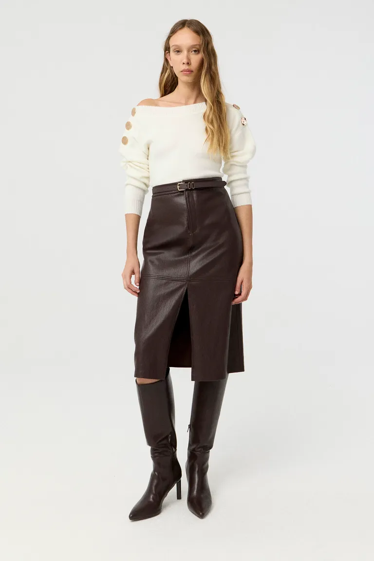 Sweater tejido con escote bote, hombros caídos y botones decorativos en hombros de Markova