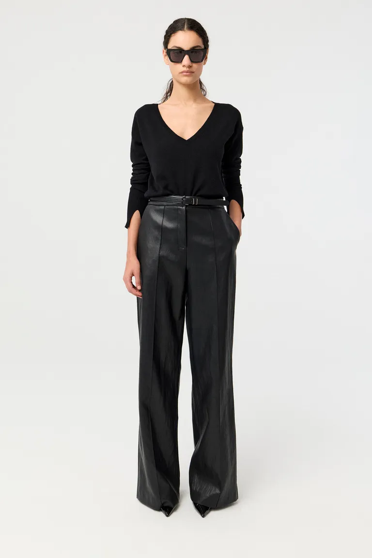 Sweater tejido con calce relajado y mangas largas, presenta un escote en v profundo y detalles de terminación en ribb. Una prenda esencial con diseño clásico que se adapta a diversas ocasiones, ideal para sumar versatilidad al guardarropa diario.