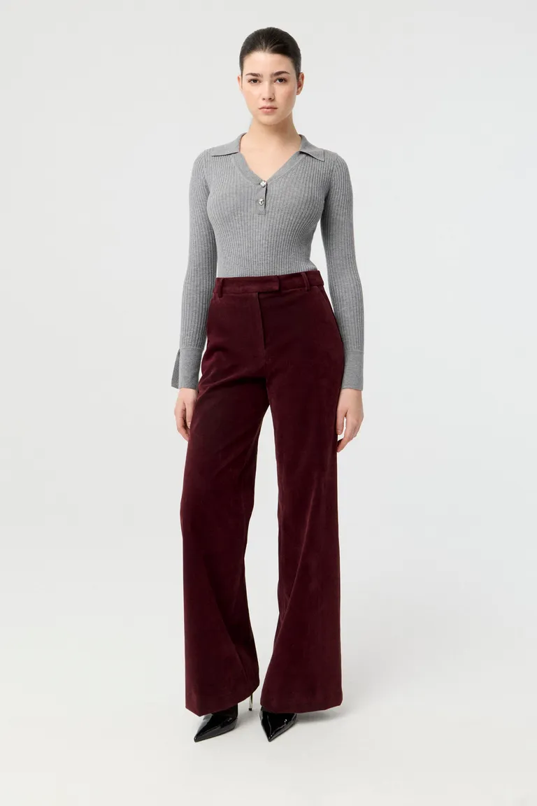 Sweater de tejido acanalado con mangas largas, cuello polo y escote en v con botones metálicos. Diseño anatómico inspirado en los años noventa ideal para el uso diario. Presenta un estilo versátil con terminaciones cuidadas en puños y cartera. Una prenda básica de temporada para completar cualquier outfit con comodidad.
