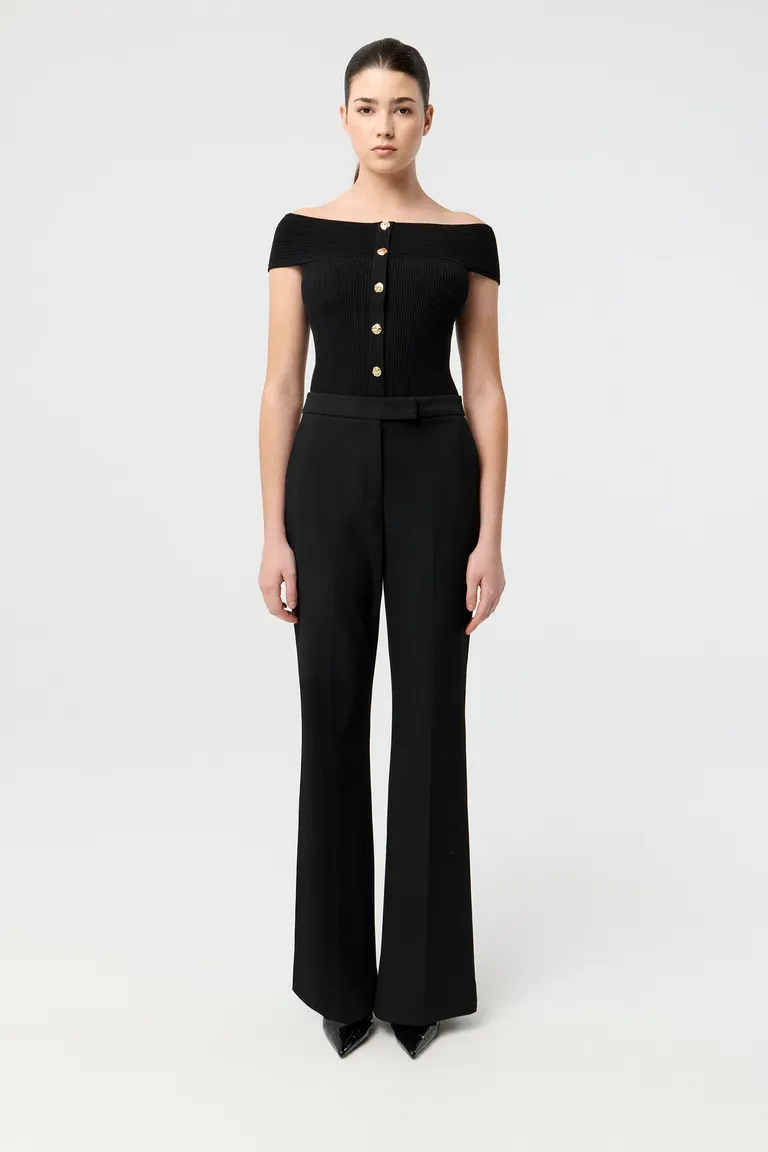Top de punto con diseño de hombros descubiertos y ajuste anatómico. Presenta una cartera frontal con botones metálicos que aportan detalle a la prenda. Una pieza versátil de línea entallada ideal para complementar diferentes estilismos diarios o nocturnos, manteniendo una estética elegante y actual. El diseño se adapta a la figura, brindando comodidad y estilo.