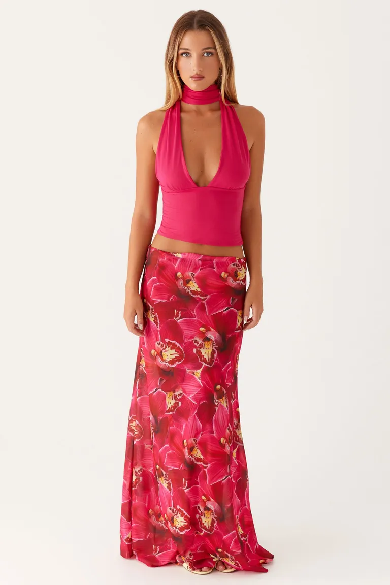 Luce un estilo elegante y sofisticado con nuestra Falda Maxi Ashley. Diseñada con un corte de tiro bajo y un tejido semi-transparente, es la prenda perfecta para destacar tu figura y brillar en cualquier ocasión. Complementa tu atuendo con accesorios acordes y conviértete en la estrella de la noche.