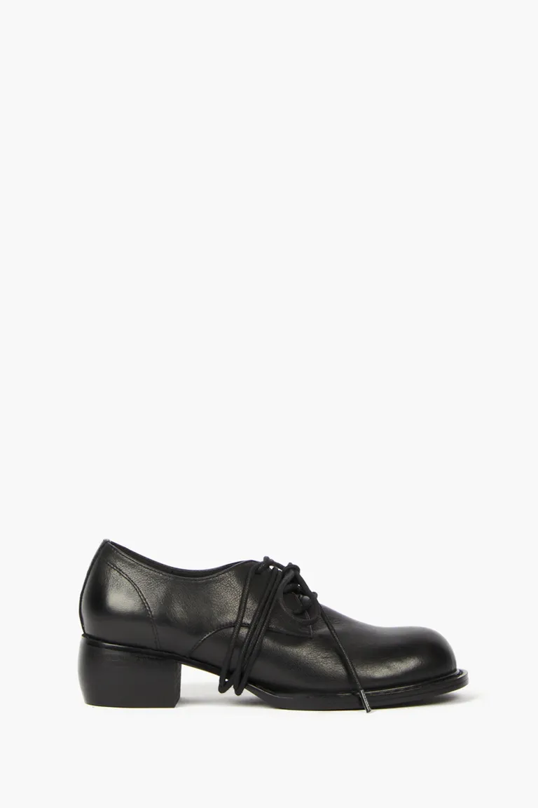 Abotinado de estilo preppy con diseño de taco ancho de altura media y puntera redondeada. Presenta un sistema de cierre mediante cordones largos que se ajustan sobre el empeine. Posee un diseño clásico con detalle de vira marcada en la suela, ideal para completar equipos formales o casuales. Un modelo versátil y atemporal para incorporar al guardarropa de temporada.